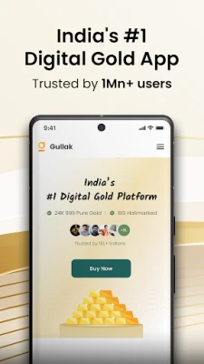 Gullak: Save in Digital Gold – भारत का नंबर 1 ऐप। ₹100 से 24K डिजिटल सोना खरीदें। दैनिक, साप्ताहिक या मासिक SIP विकल्पों के साथ सुरक्षित रूप से बचत करें। इसे कभी भी आभूषण या सिक्कों में बदलें।