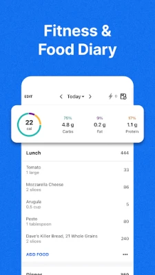 MyFitnessPal के साथ भोजन और पोषण पर नियंत्रण रखना बेहद आसान है। हमारे विशाल डेटाबेस में 20.5 मिलियन से अधिक खाद्य पदार्थों (रेस्तरां व्यंजनों सहित) से अपने भोजन को तेज़ी से लॉग करें। मैक्रो ट्रैकर की मदद से आप कार्ब्स, फैट और प्रोटीन के ब्रेकडाउन को आसानी से देख सकते हैं, और अपने मैक्रोज़, सोडियम, फाइबर जैसे व्यक्तिगत लक्ष्यों को निर्धारित कर सकते हैं। साथ ही, हमारा वाटर ट्रैकर यह सुनिश्चित करता है कि आप पर्याप्त रूप से हाइड्रेटेड रहें। फिटनेस के मोर्चे पर, MyFitnessPal आपके वर्कआउट, कदमों और वजन की प्रगति को ट्रैक करता है, जिससे आप एक नज़र में अपनी शारीरिक गतिविधि और आहार के प्रभाव को समझ सकते हैं और हमेशा प्रेरित रह सकते हैं।