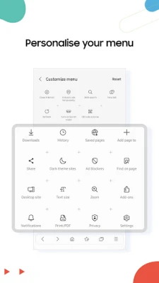 Samsung Internet बेहतरीन वेब ब्राउज़िंग का अनुभव कराता है। यह वीडियो असिस्टेंट, डार्क मोड और अनुकूलन योग्य मेन्यू जैसी सुविधाएँ प्रदान करता है। अनुवादक जैसे एक्सटेंशन भी इसमें उपलब्ध हैं। साथ ही, सीक्रेट मोड, स्मार्ट एंटी-ट्रैकिंग और स्मार्ट प्रोटेक्शन से आपकी गोपनीयता पूरी तरह सुरक्षित रहती है।